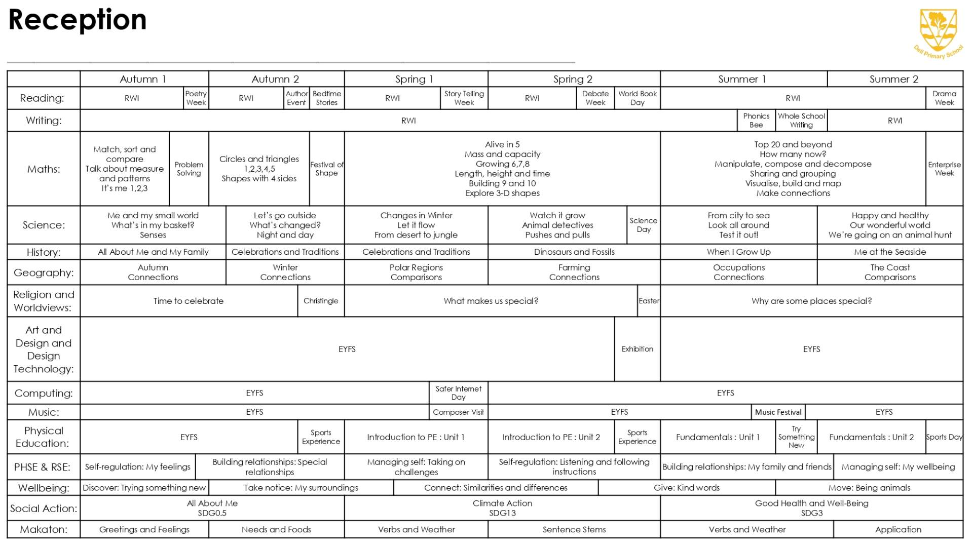 Dell Primary School Reception Curriculum