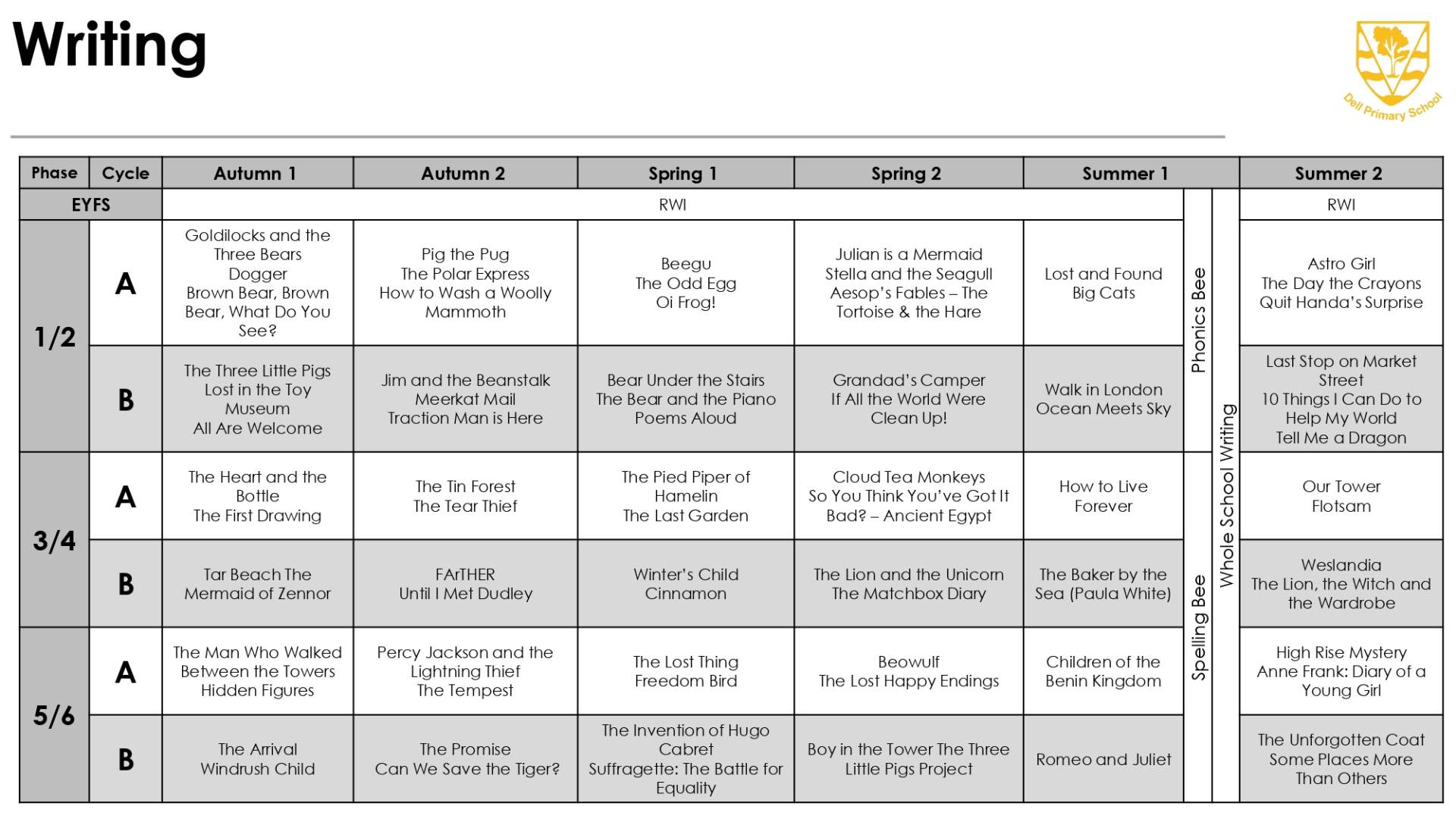 Dell Primary School Writing Intent, Implementation and Impact Statement