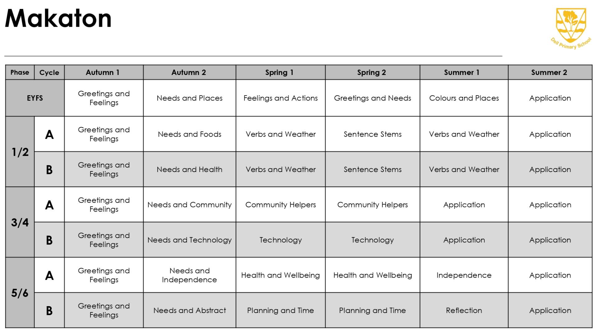 Dell Primary School Makaton Curriculum